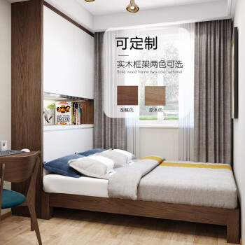 新キン宝琪纯木ベトド日本北欧风白クヌギ木中华风畳ブラル1.5 m無ベド架简易硬板ベド1.8 m高サベドホテド【胡桃色】1.8*2.0ベトド