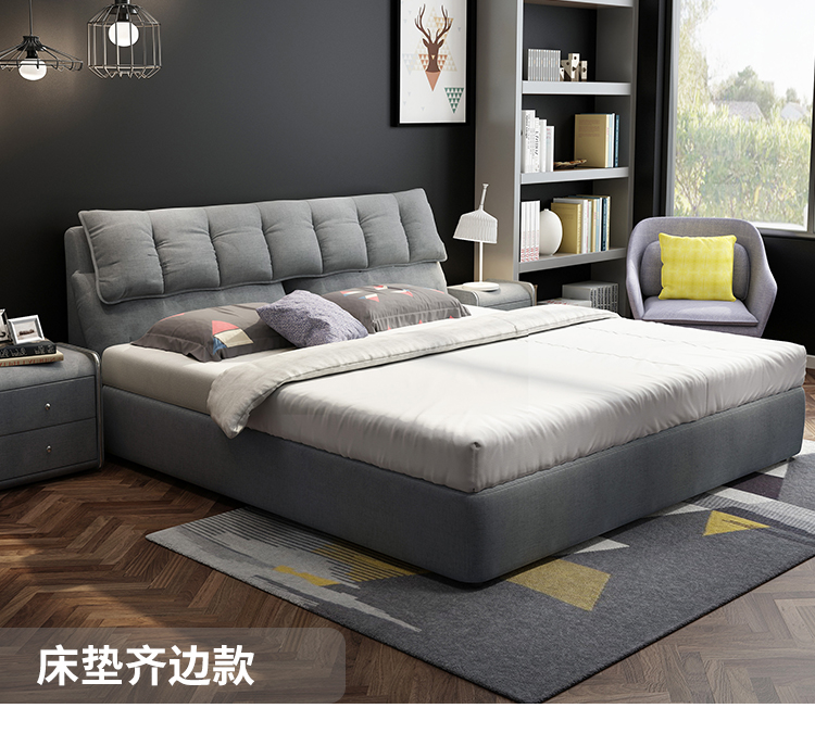 【秒殺割引き】キホープファブリックペア純木ダブベルジッド北欧風モダシンプ外し収納可能寝室室家具JG 191棚ベド【注文メモア色】1.8 m*2 m