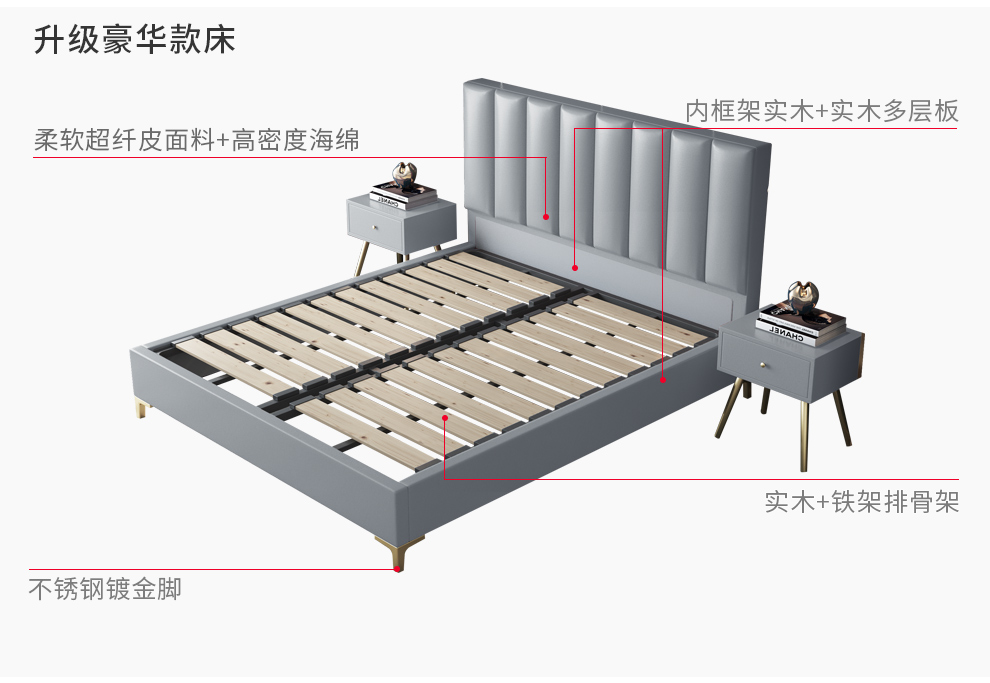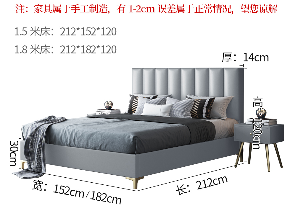 広陌家具モダシンプレル1.8 mベドドダンベル革制ベケリングリング制ベケリングリング1.5 Mベベル経済型收纳家具クラケルモアジック2000ドット构造