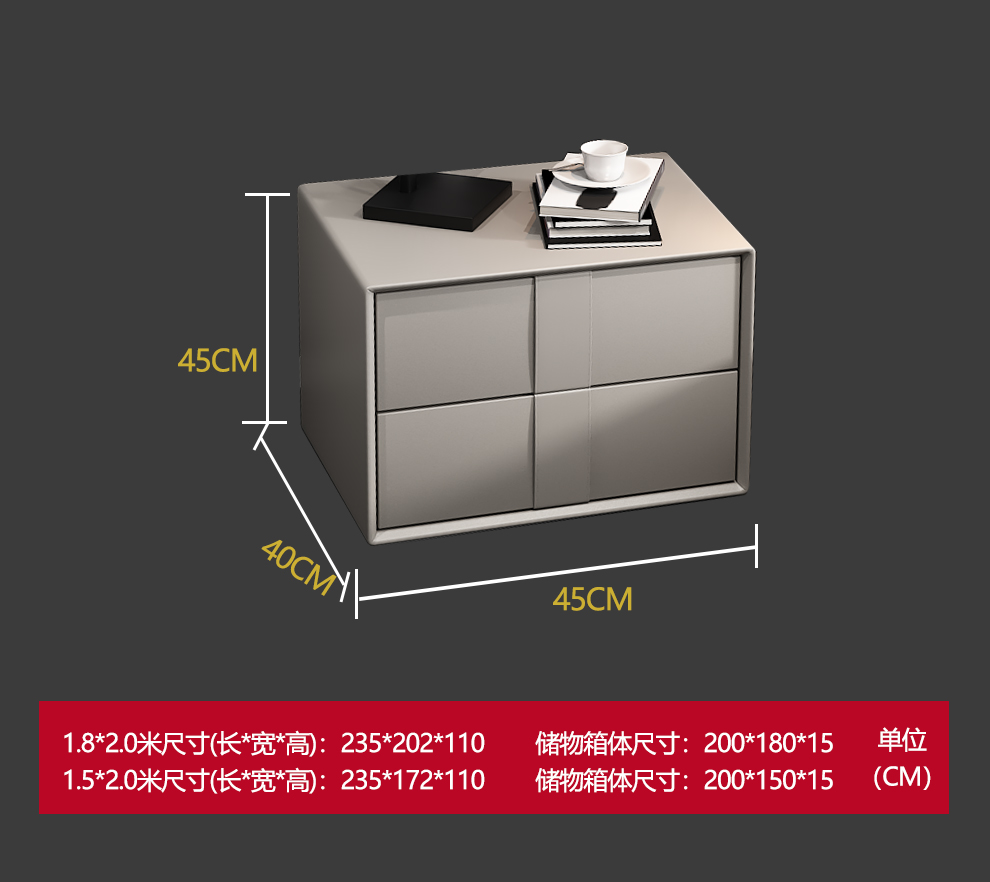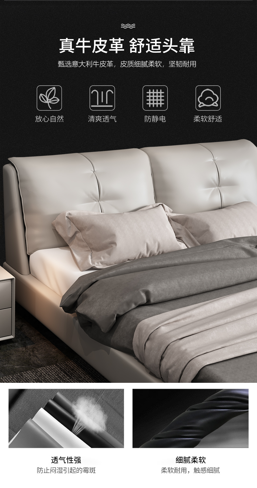 虔隆ド北欧风本革ベトド大ベトド柔らベベルの纯粋な木枠収纳ベド本革1.8 m 2.0 m意式极简寝室室室レザ・ド纯木枠