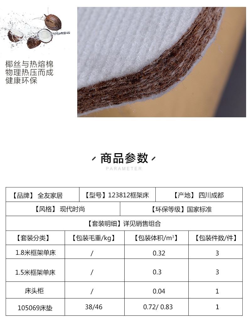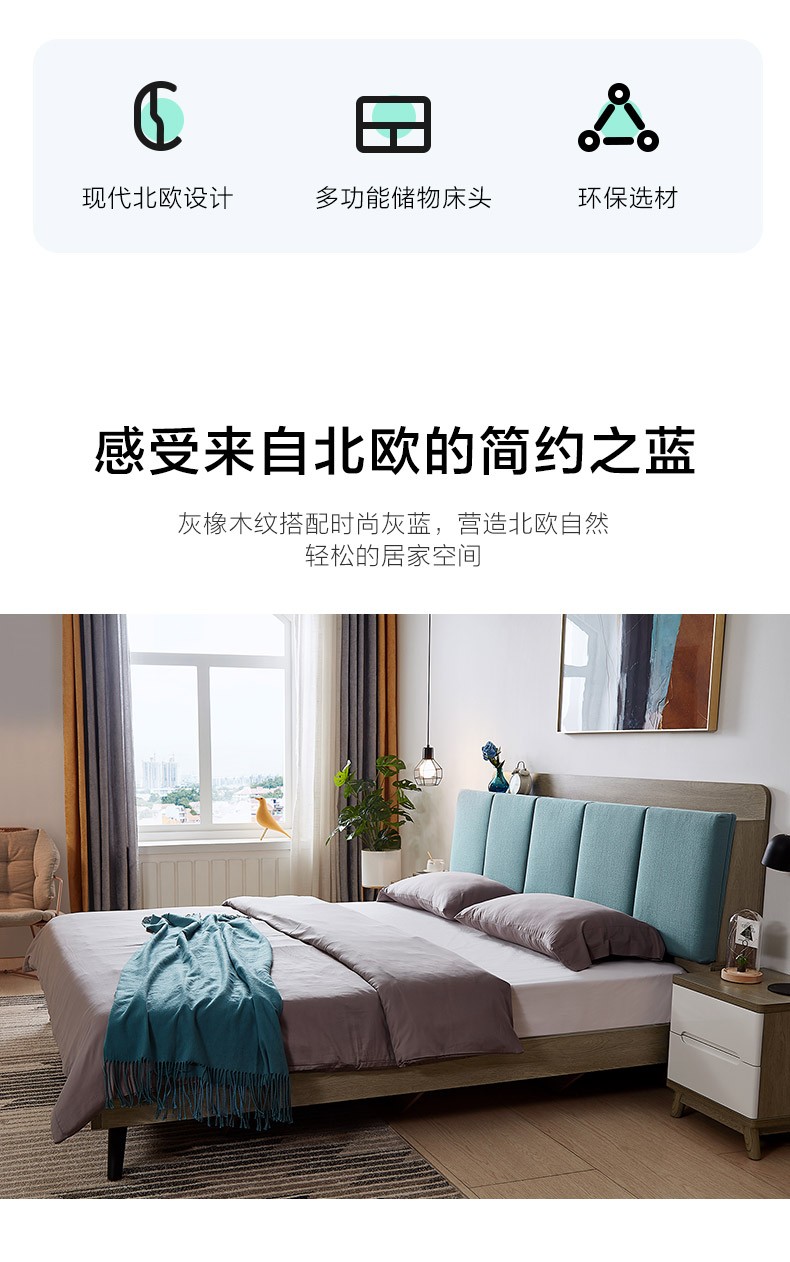 QUANUホームダンベル北欧風灰色クヌーの木目のベッドファゴック木绵麻たフレッドベッドルーム收纳ベド1.8 m 123812ベド+ベトド天井*1+ベド
