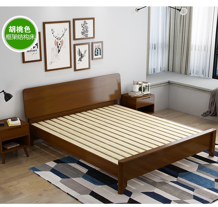 ベッド純木ベケジット北欧風ベド(原木色/胡桃色二色選択)1800*2000