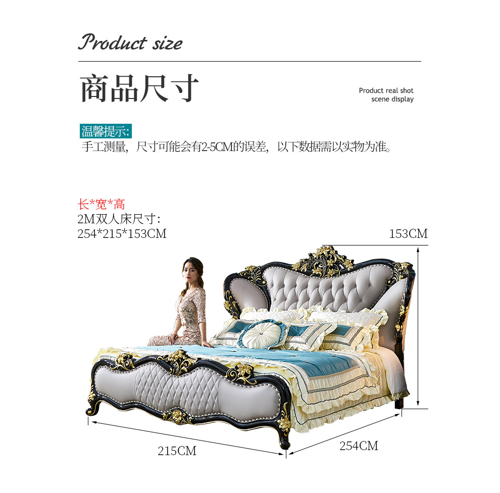 MENGMEISIXUANベド洋風ベド純木ベケジット本革ドアメリカン純木彫花ダンベル荘寝室新古典家具1.8 m大ベド6068 mベド+2ベド+2ベド天井+2ベド天井+
