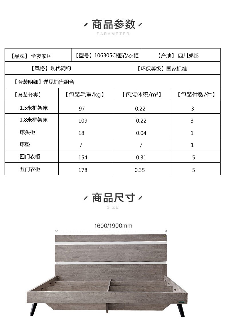 QUANUホムム家具セト1035 Cベト+ベト*2+ベトパッド+五門クローゼット+1800*2000