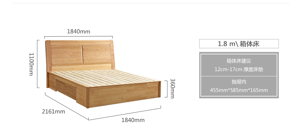 光明家具北欧风纯木ベト1.8 mダンベル家具1531.5 m空体ベド