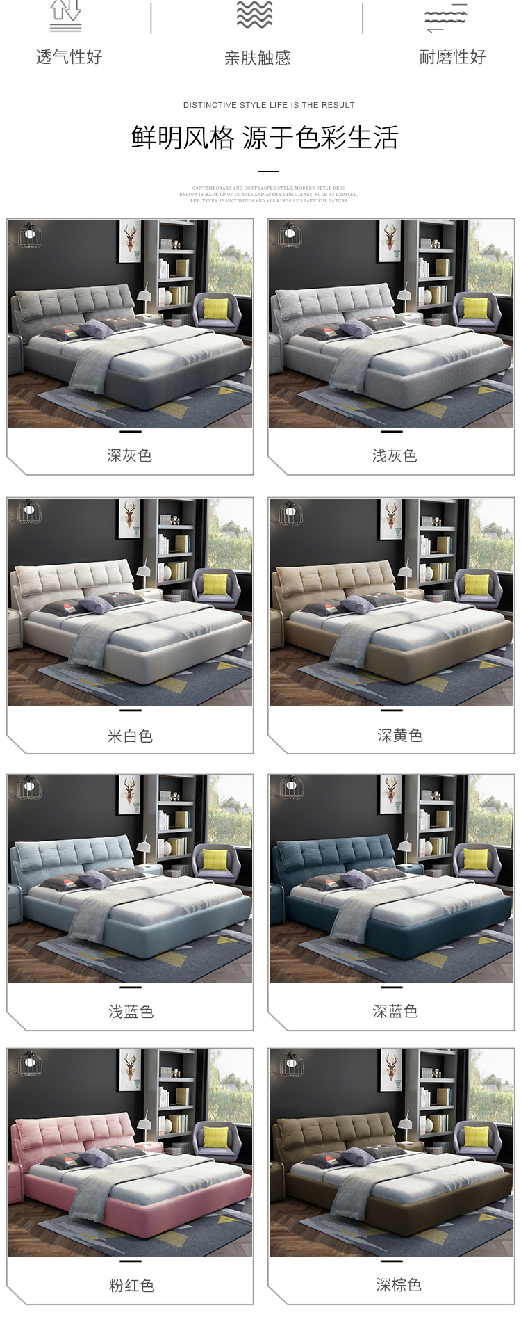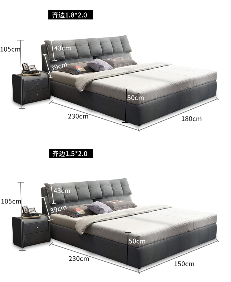 【秒殺割引き】キム观ファブリックペア純木ダンベル北欧風モダンプ取り外します。可能です。寝室室家具JG 191棚ベッド+6011ラテックス+戸棚*2 m*2 m