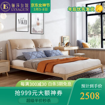 LYSAGUNベベル纯木ベド北欧风皮ファブブレット1.8メトル寝室シンプ外です。木色ダンベル家具ベド1800*2000
