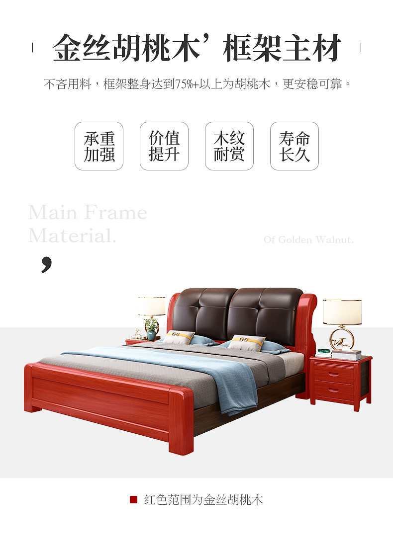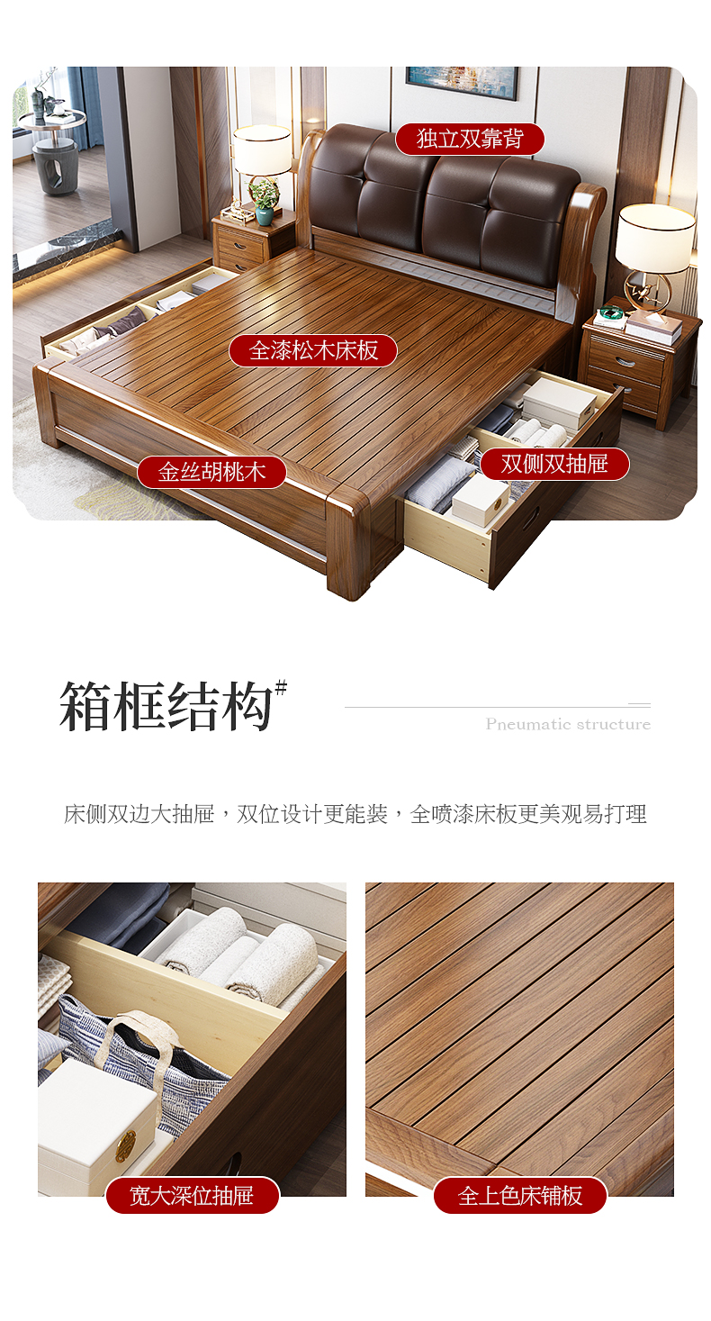 純木ベックの木ベベル1.8メトルの寝室家具184ベト+1つのベドカー(胡桃色)1800*2000