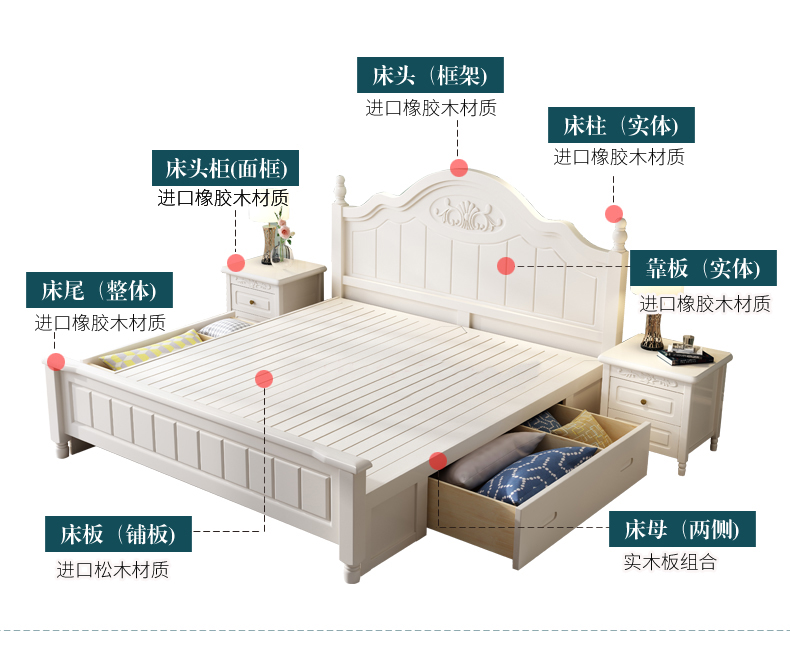 迅毅アメカン純木ベド1.8メトル寝室室ベッド1.5 m白色モダンハーン式プレセンセン式プレセゾン(色は備考を撮影する)フレム構造15000 mm*2000 mm