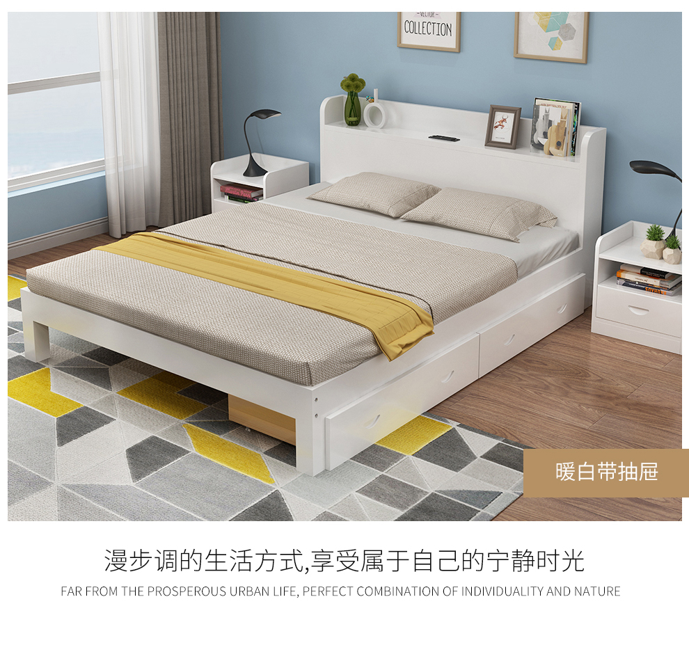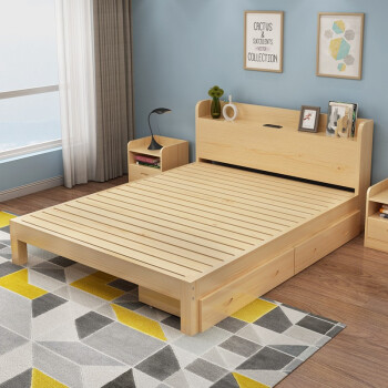 この時、ベッド純木ベケジット1.5枚は、ベド1.2 m原木色フレム子供ベドドベム家具原木無漆ベド+2つの引出し+8 cm 3 Eコーナリングド1.9 m