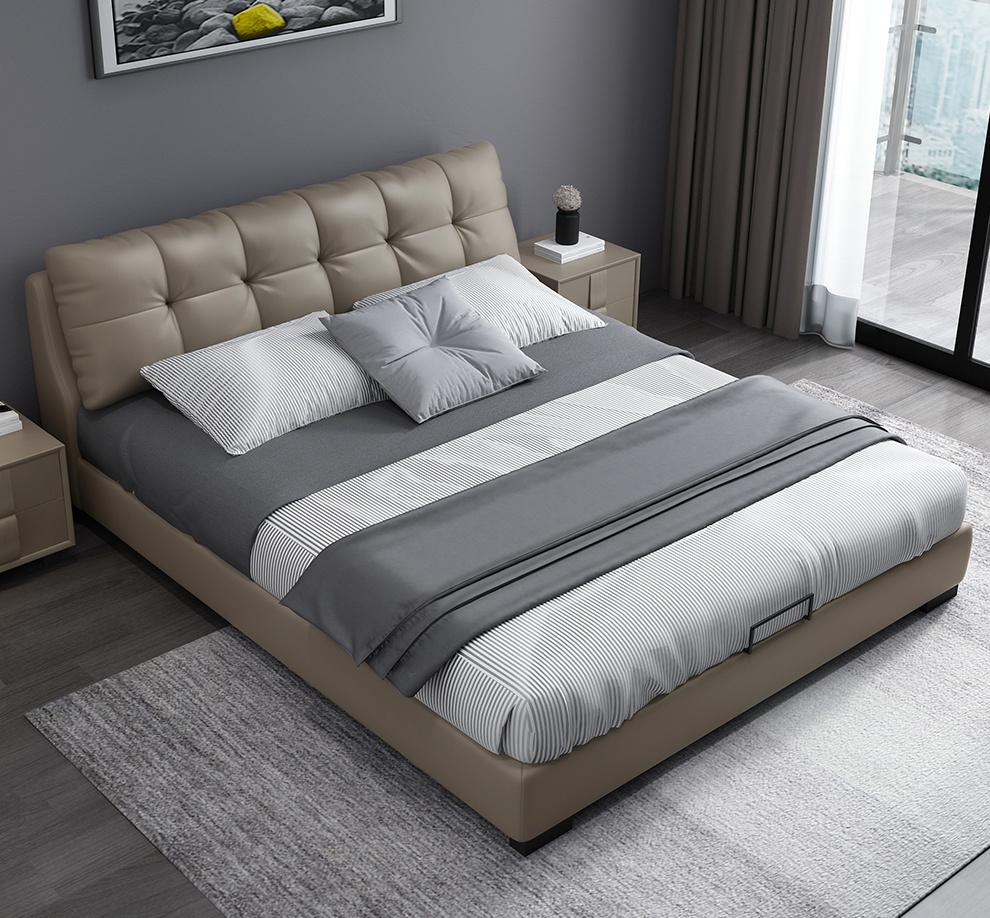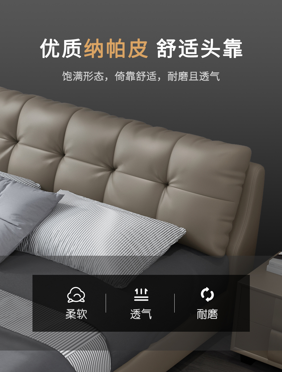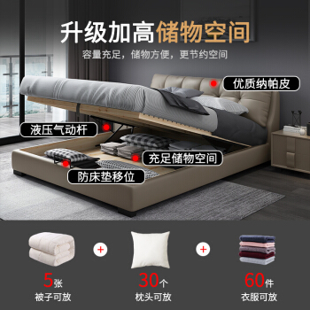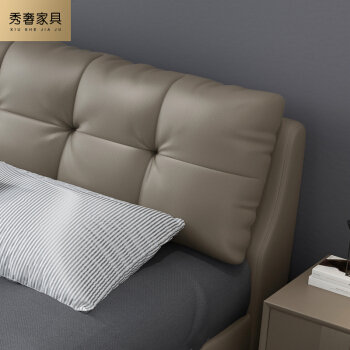秀奢北欧风本革ベッド寝室モダシンプレルベルジット1.5 m/1.8 mペ柔らべべべったべード纯木ベレッジ寝室家具组合本革单ベド1800*2000フレム构造