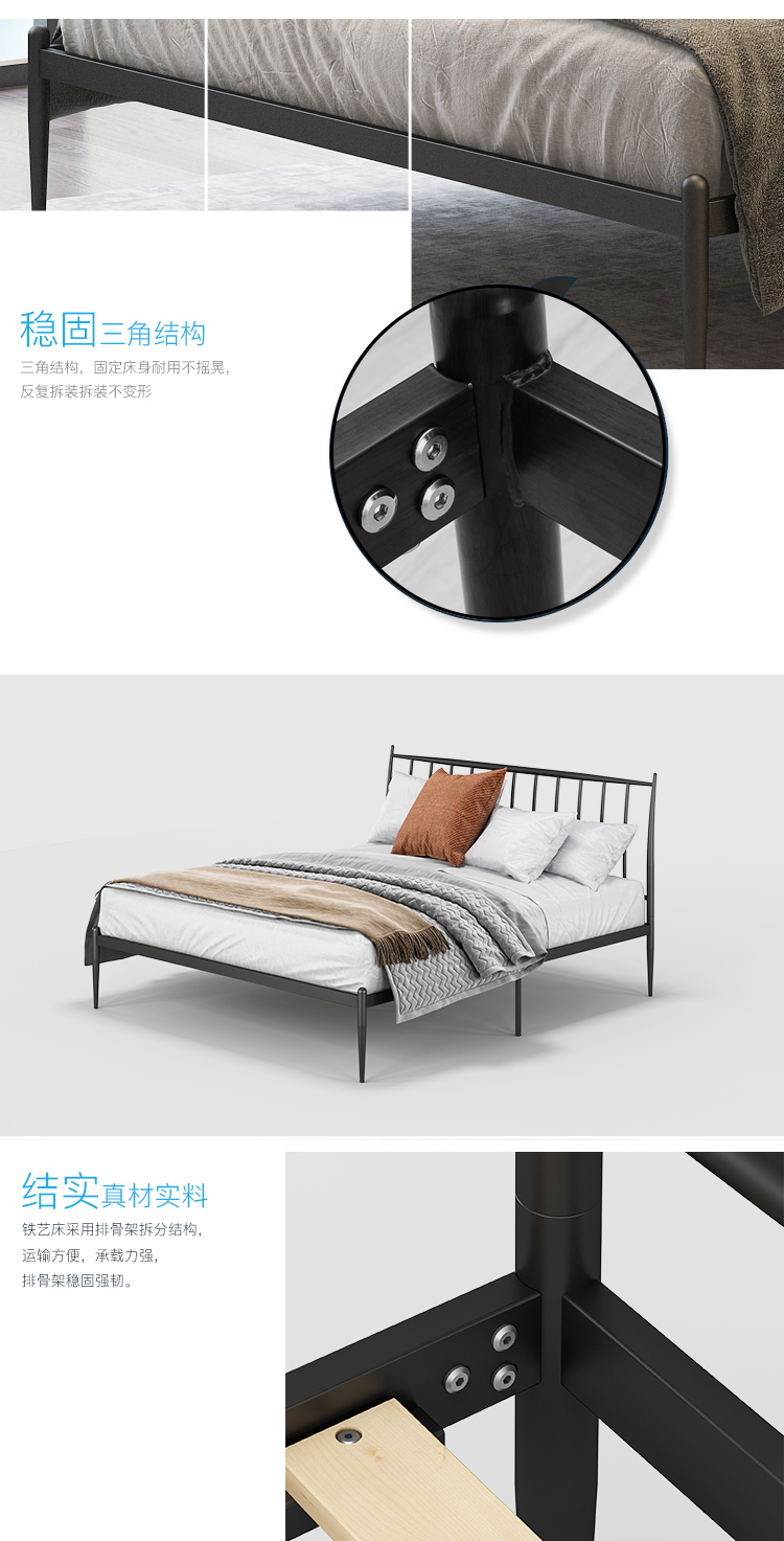宜眠坊(ESF)ベック鉄ベッド简易欧州鉄芸ベッドEC 102黒1.5 m*2.0 m