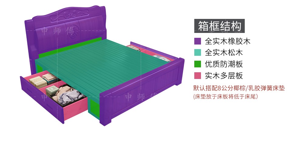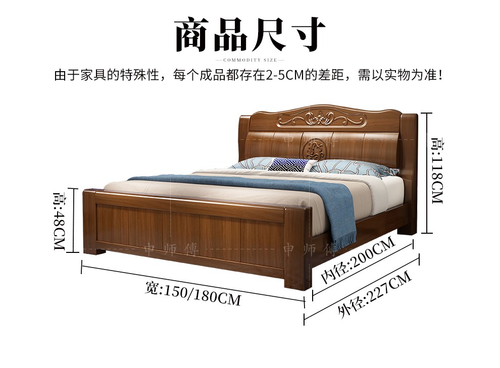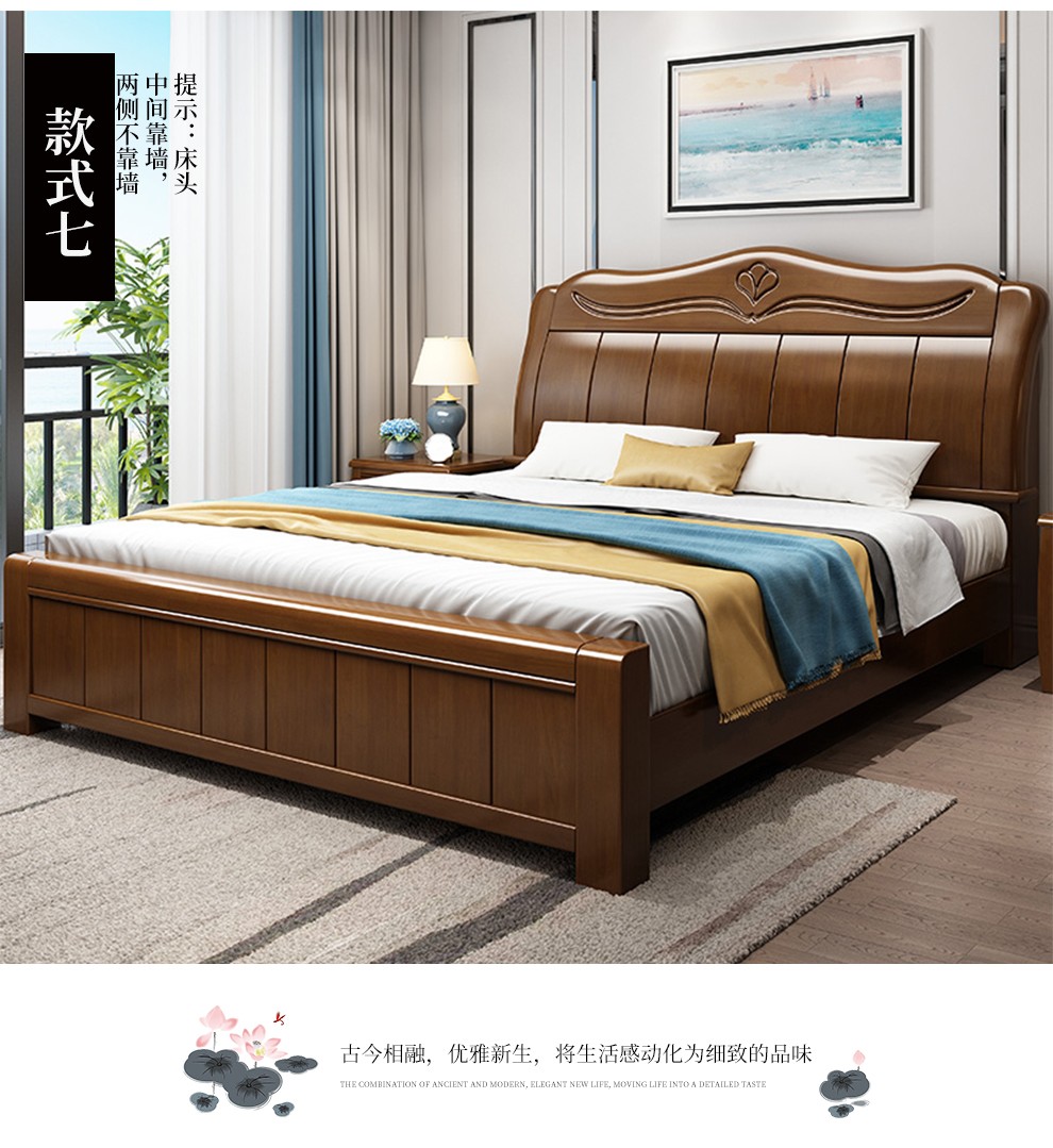 申师匠ベド纯木ベト1.8 mダブルダーベト中华风1.5 m大ベト経済型寝室室収纳纳ベト胡桃色ベニニア色キキキキキキムフレム构造1.8 Mベト+ベトド
