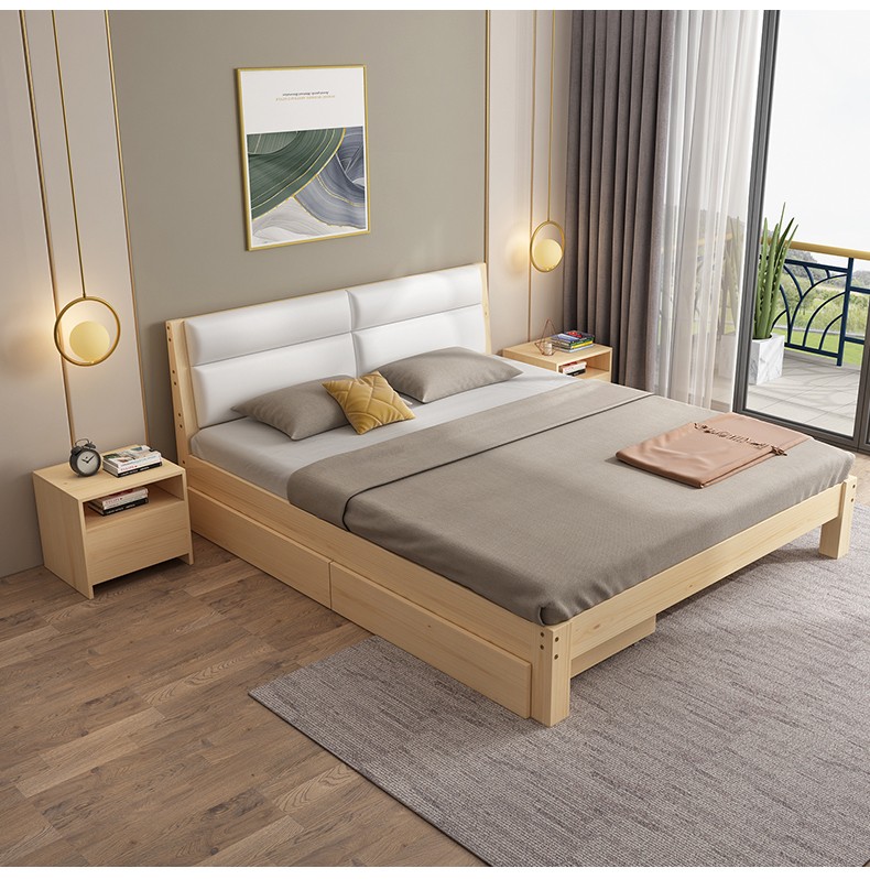 楠糸巢ベト纯木ベト1.8 mダブル1.5 m洋风普チの沢シングル収纳松木ベトの白い皮をプロにします。3 Eコーナトラック1.5 m*2 m
