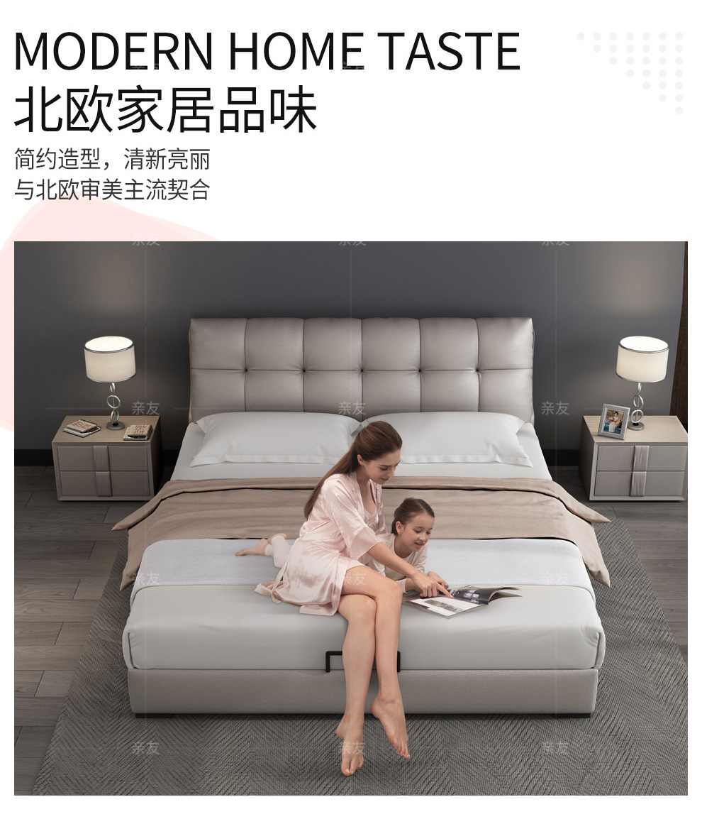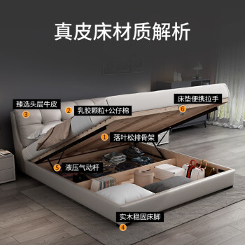 QINYOU北欧风本革ベッド寝室1.8メトルトルトル柔らかベベルダムダムダムダムダムダムダムダムダム1.5メトル寝室家具公仔绵包本革ベケット1.8メトルサイズサイズサイズ収纳构造【ベレル纯材】
