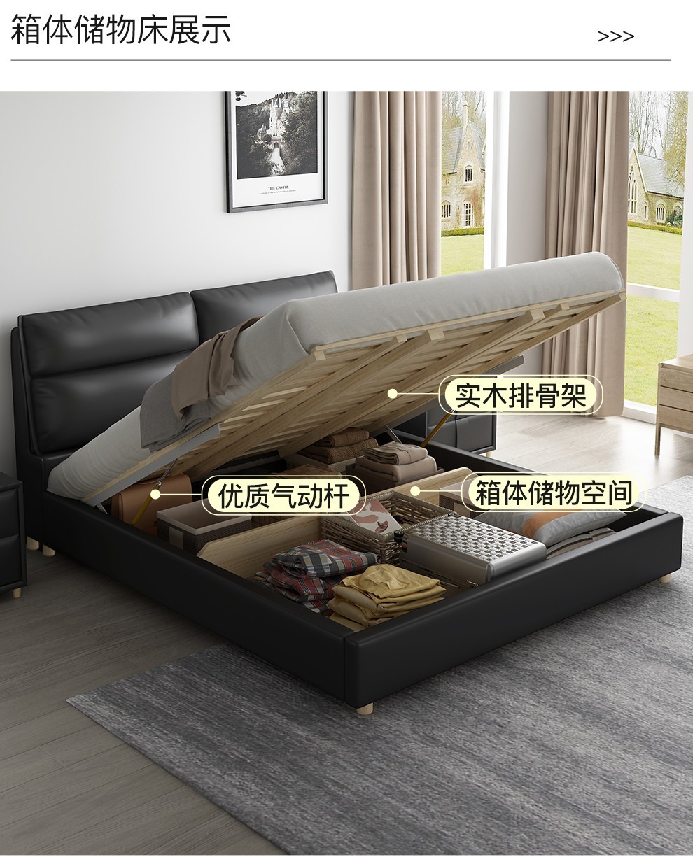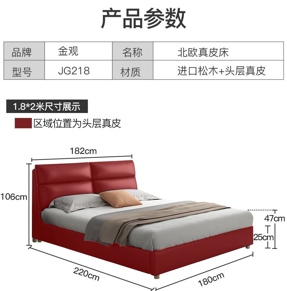金観ベト全本革ベトド北欧风モダン纯木寝室ダンベルベルベルベルベッド【ベッド】1.8*2メトル棚ベド【全本革+纯木(入力松木)】