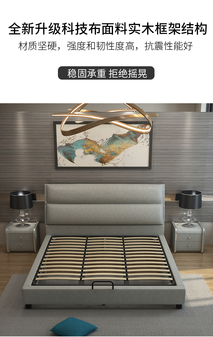 ファブリックバックが綺麗で、雰囲気がいいです。寝室の装飾によく似合います。背もたれが快適で、布地もいいです。ベッド板は丈夫で、価格性能比が高いです。