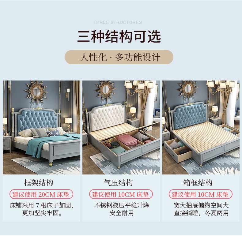 瑞立アリカンベッド1.5 m 1.8 mダンベル田舎復古ベッド新中国式ベッド寝室室したベッドバックベッドベッド1.5 m
