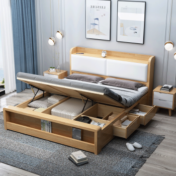 味は基本的にあまりないです。うん、見た目の材質は純粋な木に見えます。うん、側板押さえも含めて、直観的な感じは全部純木です。うん、シンプロ、フレッシュで実用的です。技術はとてもいいです。しかも全体のベッドの端の角は滑らかで、とげがありません。