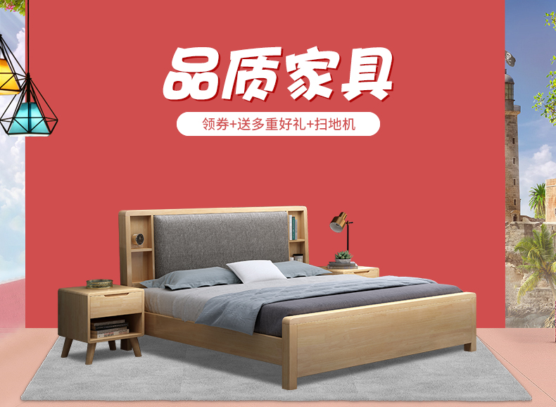 喜客邦北欧风格纯木ベケルト様ベドモン1.8メトル家具とダンベルカエラのプロ3。