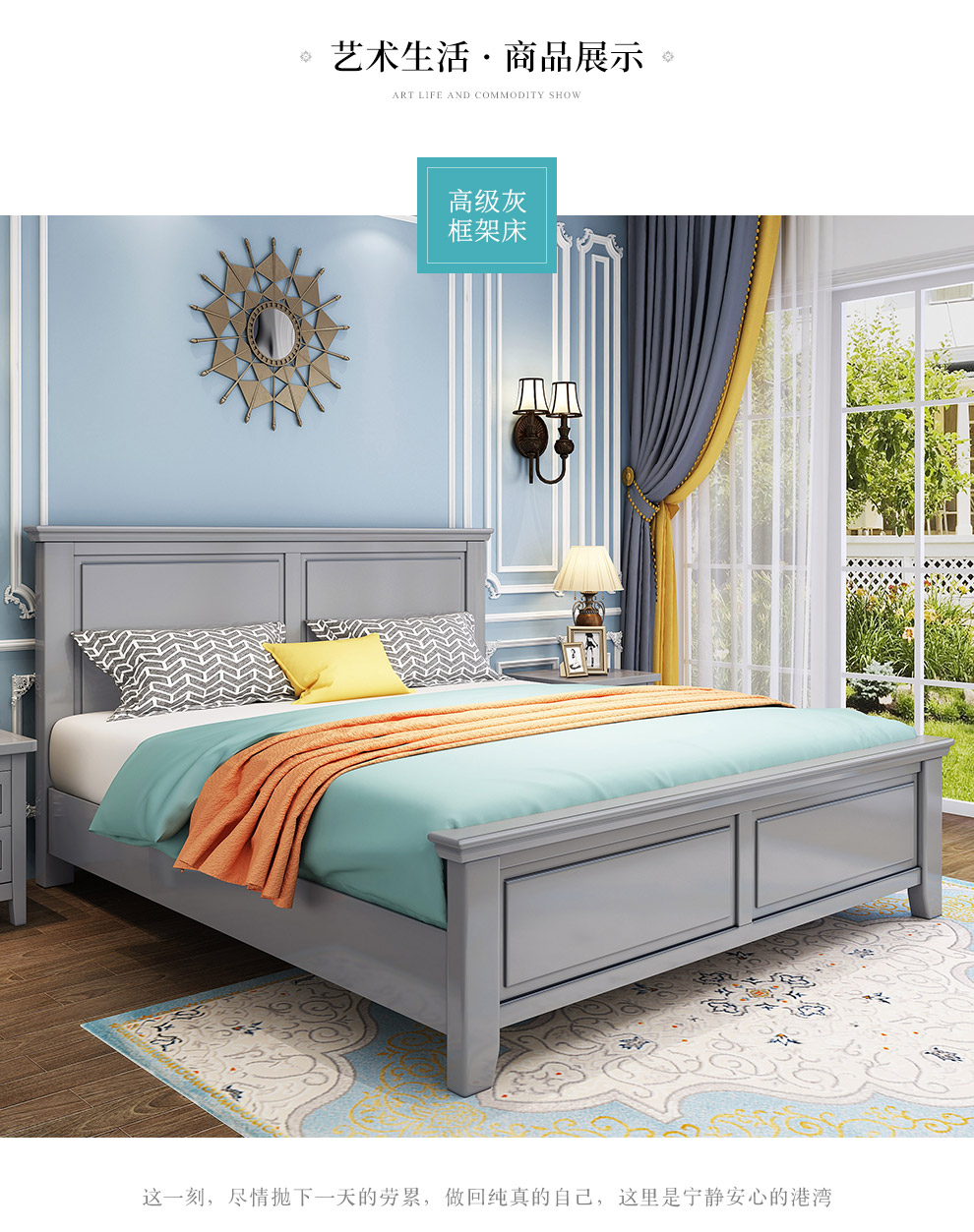 一覧(ZHUOLIN)ベッド纯木ベトド寝室家具シングベド【高级灰】1500*2000【フルレンジ】