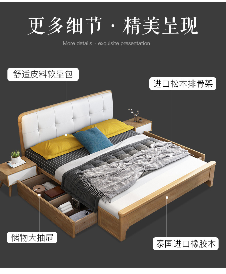 幸运熊北欧风纯木ダンベル収纳纯木ベド収纳小型型モダンプ1.5 m 1.8 mフレインハム1500*2000