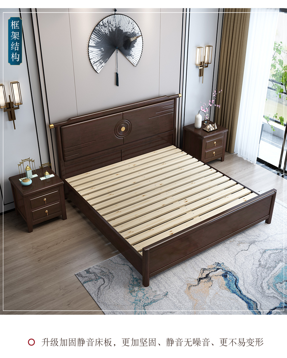 皇朝怡景新中国式纯木ベト1.8 mダンベル1.5古典禅意寝室室モダシンプ家具工场直営纯木ベド配合静音ベクター+ココナッツブ+2*ベトケースケース+2