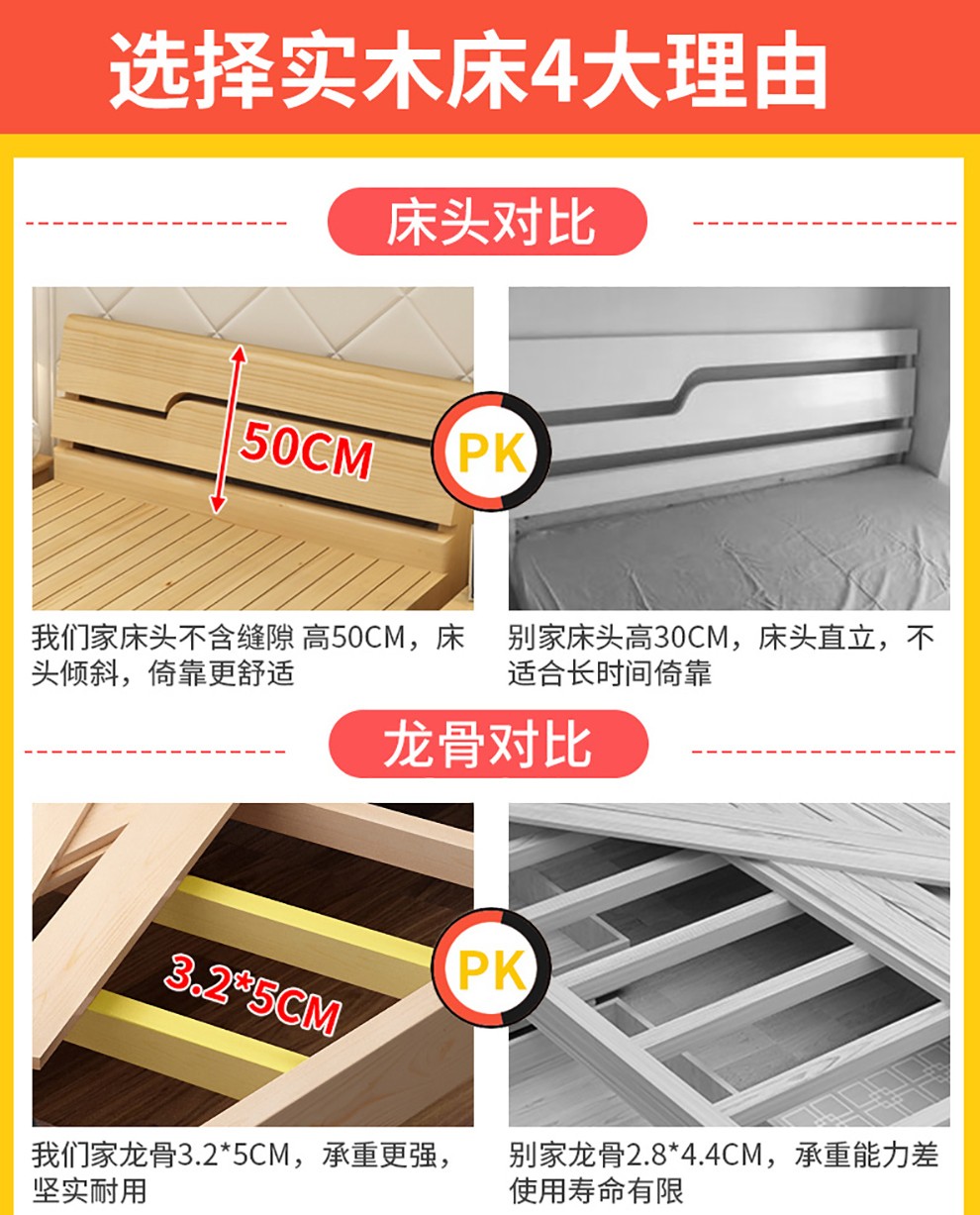 ペ尚軒ベッド純木ベド1.8 m 1.5 m 1.2 m松木ダンベルシンダンム洋風原木ベド畳無引出し1 m幅*2 m