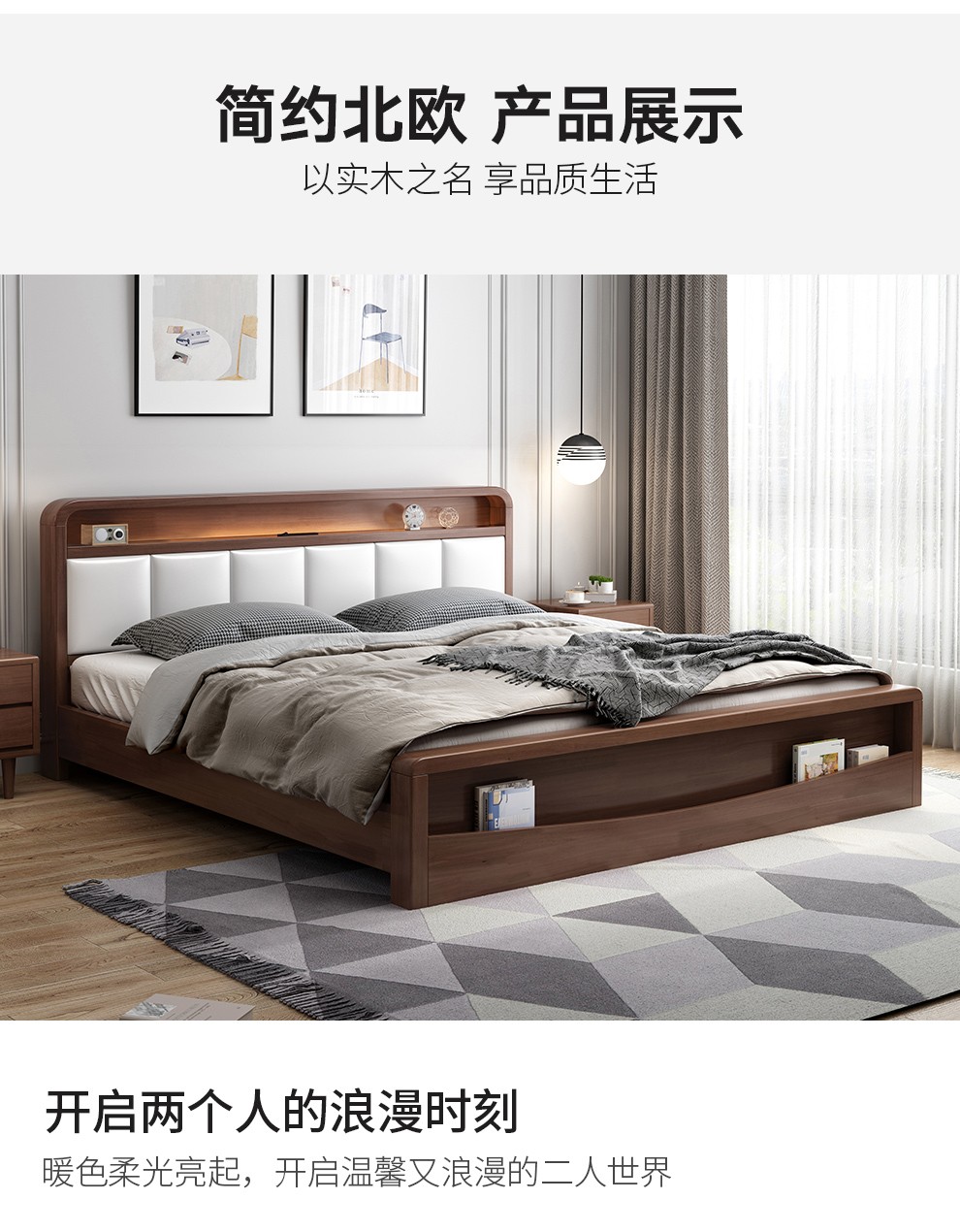 锦巣ベト北欧风纯木ダンベルの夜灯りり大ドダンベル寝室家具SC-599シングベル1500*2000スタンダード