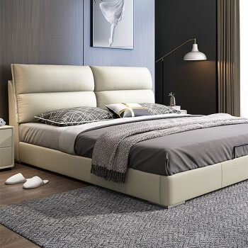沢恩斯曼ベト意式極簡insネット紅北欧風シンプロベル寝室ダンベル純木ベド本革単本革ベド1500*2000標準ベド