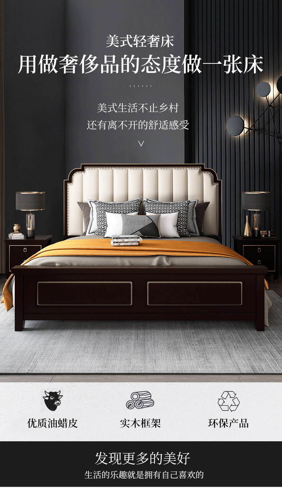 外観は豪華で雰囲気がある寝室のベッドで、色は控えめで、材料は厚実で、ベッドの身は安定しています。