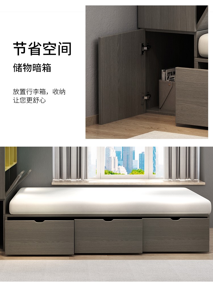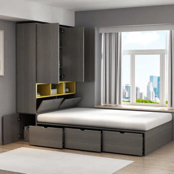 パ悦尼ベト一体サポポタスマイズ北欧风普レド1.2 m 1.5 mダンベルダンプ収纳ベド+15 cmブラウストマット