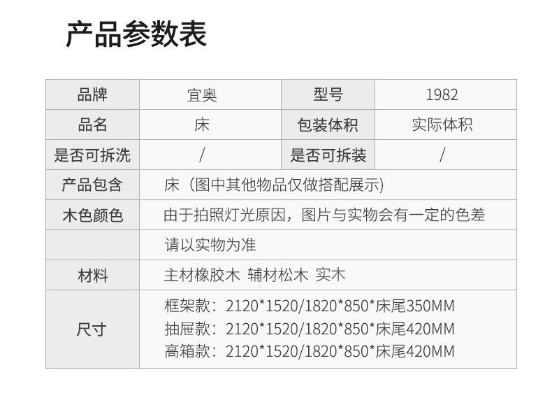 宜奥ベトド北欧風純木ダンベル大ベケセット家具1.8 mシン1.8*2.0 m(フレム構造)