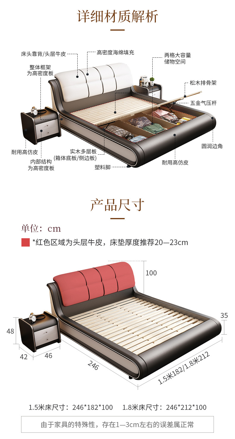 曲客(QUKE)ベト本革ベト1.5/1.8メトルダムダムダムダムダムダムダム寝室室家具ベトド*1+3 Eコナド