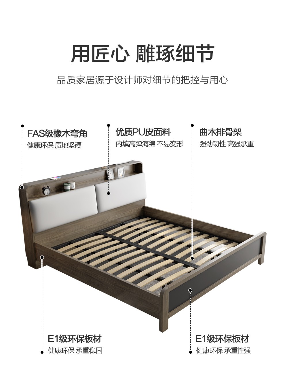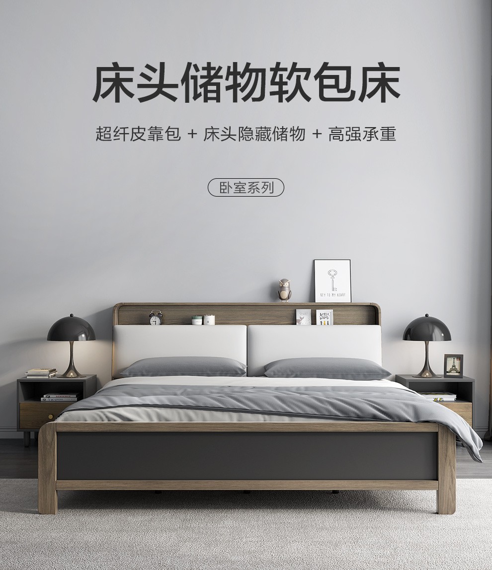 Gyiダンベル1.5メトル北欧风经济型1.8メトル収纳室室板式くれたベド纯木足灰色ベド+ベド2つ+天然ゴムベト1500*2000