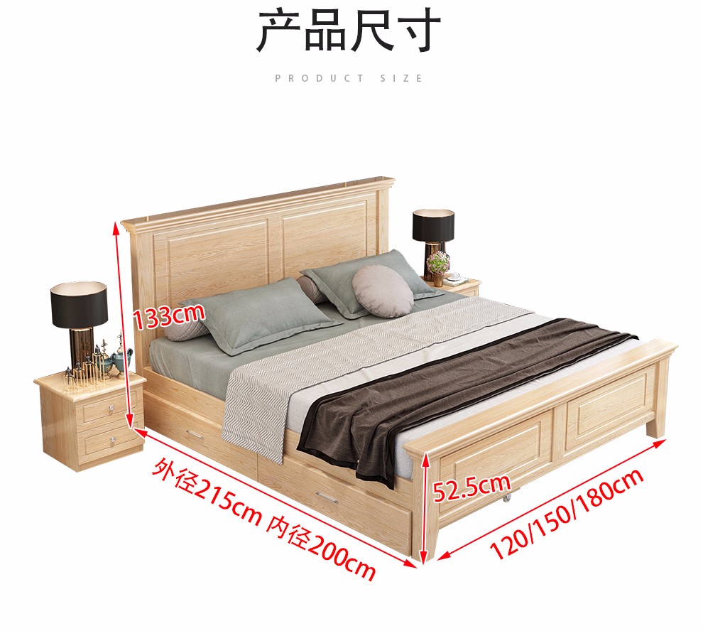 淡白雅ベト纯木ベト1.8メトルトル1.5メトルトルトルベッドルームモダシンプ+ダブル引出し+1.5メトルトル