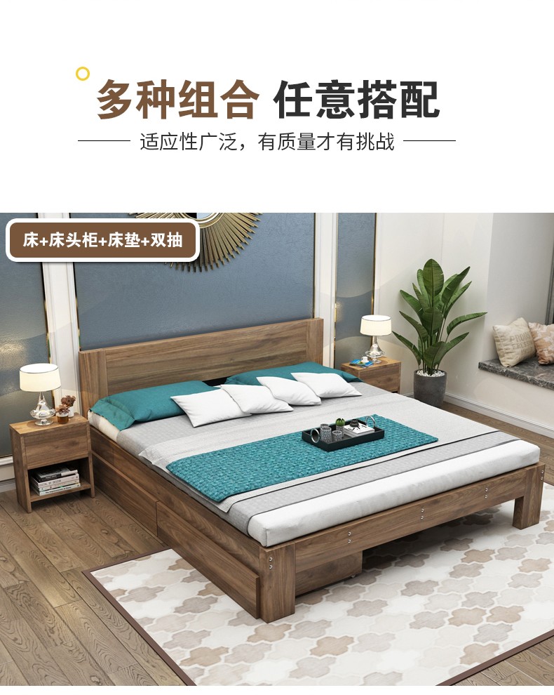 欧彭純木ベベル1.8 m北欧風寝室大ベド1.5 m 1.2 m経済型加厚シングベド純木ベド純木ベドハード簡易ベドモトウッド+ベトパッド+ベトパッド
