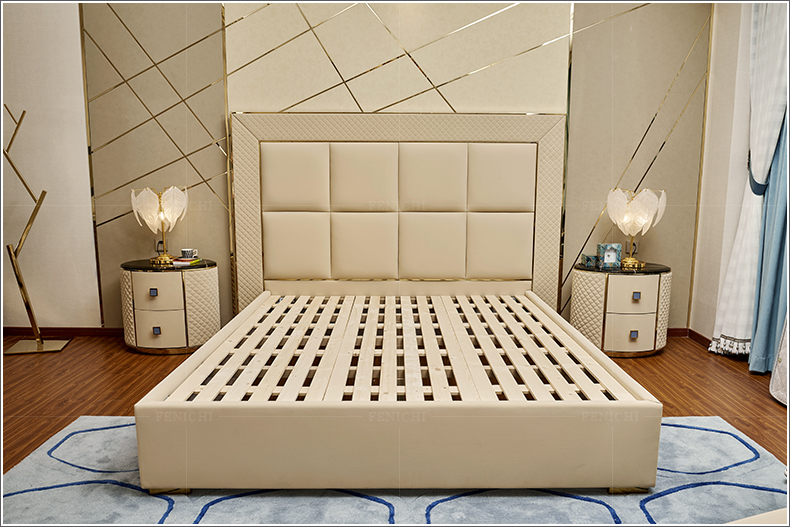 フニのプレチに邪魔された沢意式本革ベド牛革寝室室大気ダンベル1.8 m后モダン家具全本革された1800*2000 mm