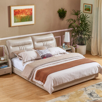 上明珠家居(M&Z)革制ベトリング头层本革柔らかベトベル+ベド头台×1+バトン1500*2000
