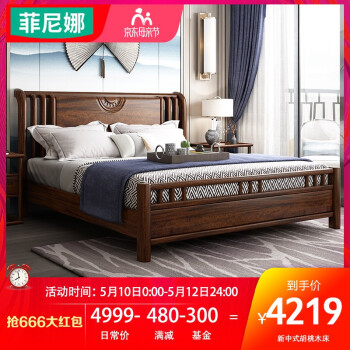 フニクの木纯木ベトド新中国式ベド1.8メトルの寝室ダンベルの寝室家具はハード+901マット+ベドの普通盘*2.0 m