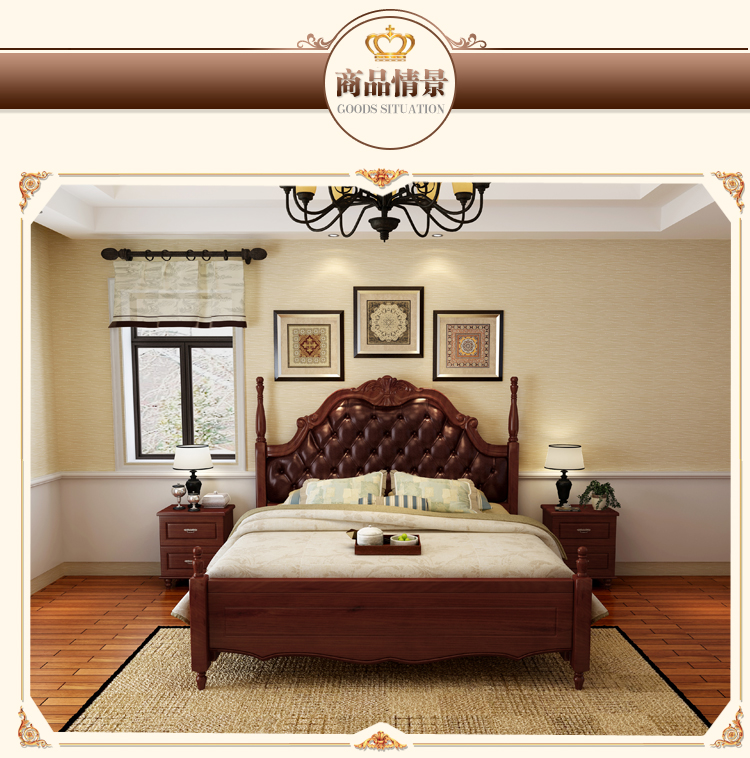 妃巢阿メージの沢ベトの纯木色复古カントリーの皮は皮质1.8寝室1.5洋风ベドの骨格ベド1500*2000