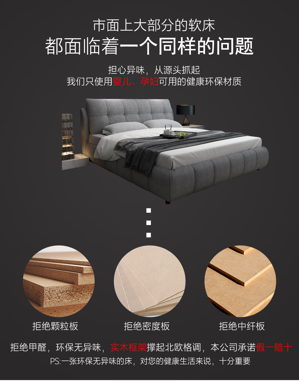 寝豚フューク外し可能なダンシンプ布ジッド北欧風小戸型寝室布ベベルダウダウダ純木フレド1800*2000標準ベド