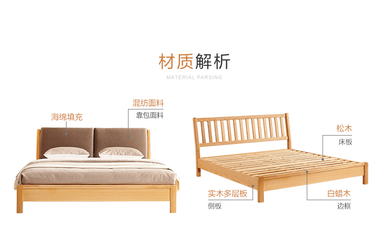 QUANU住宅純木ベト1.8 mベト北欧風シンプ寝室家具白蝋木ダンベル12500.1.8 mベト