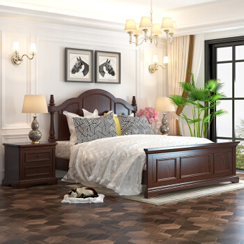 青島一木純木ベクレン農村純木ベド1.5 m 1.8 m寝室大ベドラベル純木寝室家具棚