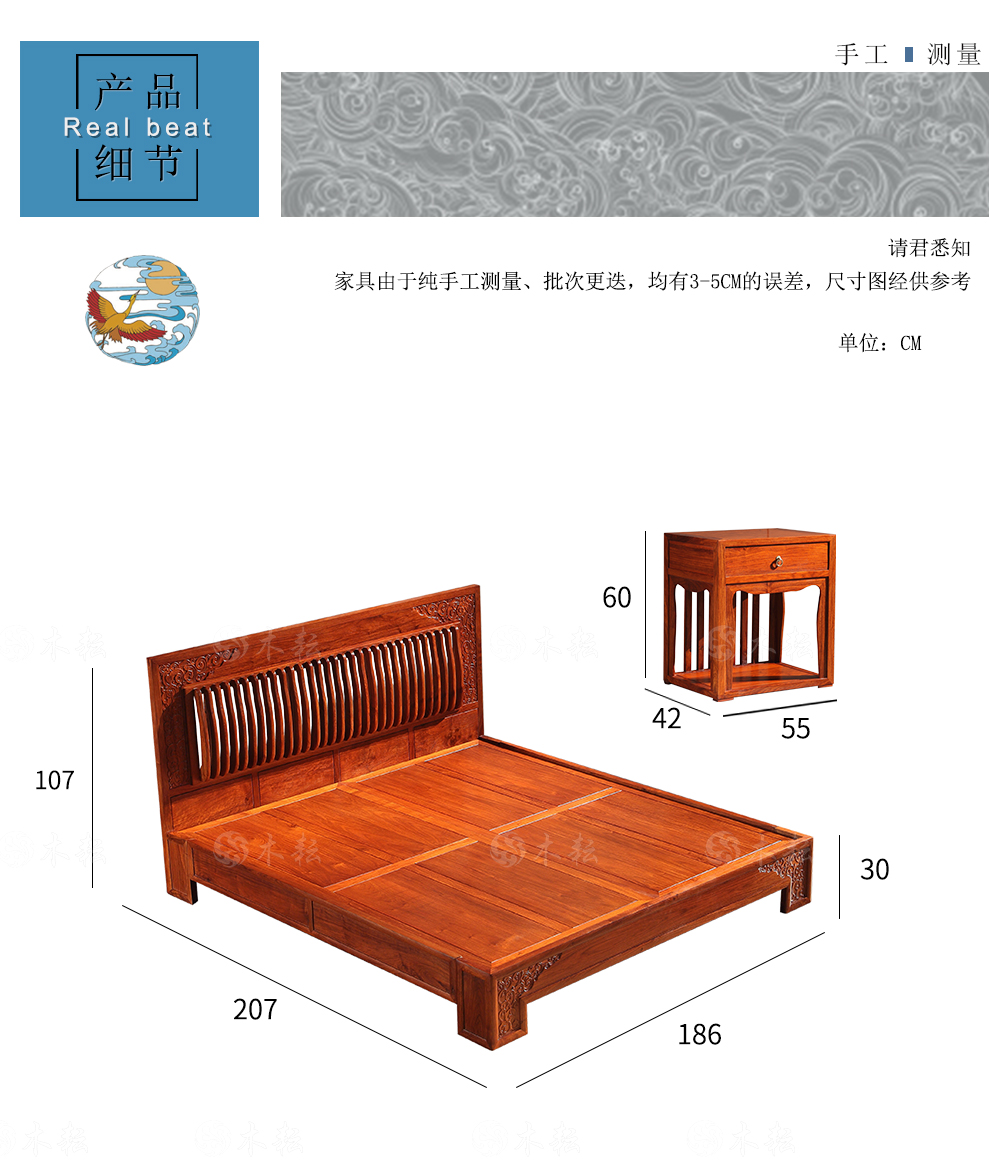 木摘みみみ红木家具アーフルカナシ(学名:ハリネズミ紫檀)ベト新中国式纯木ベド京セラ色ダンベル古典纯木祥云ベド花好月円シン(A項)+2のベド头台1500*2000