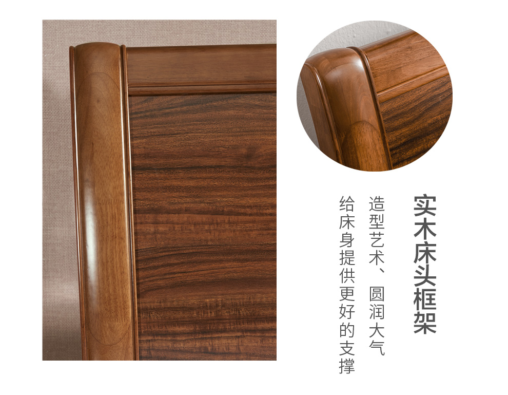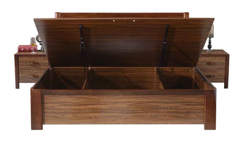 モダン新中国式純木収納ベド1.8 mダンベル1.5 m収納機能ベド経済型寝室家具【ベッドはベドを含む】1800 mm*2000 mmフレム構造