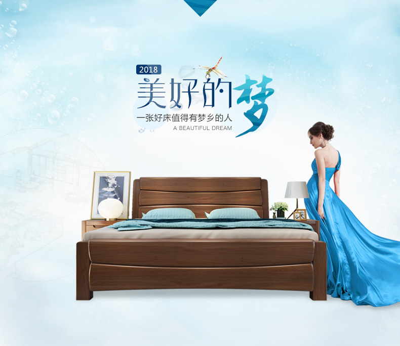 E木E家木家ベト純木ベケト(E木E家)中華風ダンベル1.8 m寝室家具胡桃色1 Mカースト一般ベド