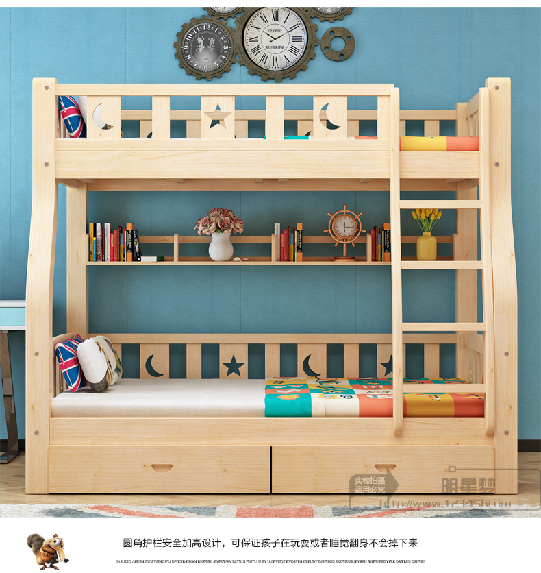 逸情軒は純木ベドを包装して上下ベド二段ベド大人上下階母子ベド二階ベド二階ベドベトトリトリスタイル1.8 m多機能直梯ベド上段ベド幅100下段幅120