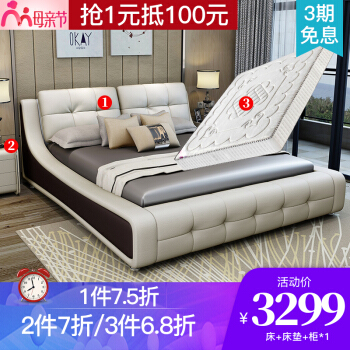 オード左ベッド革制ベド北欧风ダンプ本革ベド(优雅米白)1.8*2 m纯木棚ベド+601トラック