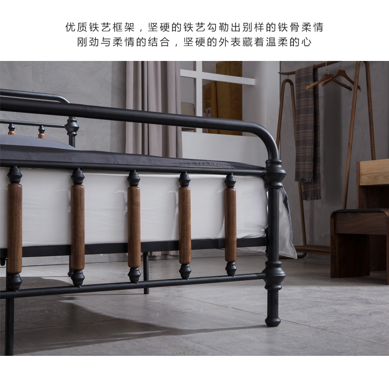 アスタ舎黒胡桃纯木ベト1.8メトル洋风地下铁芸ベト寝室ダンベル北欧风【新品前売30日间出荷】【黒铁芸ベト】1800*2000を予定しています。